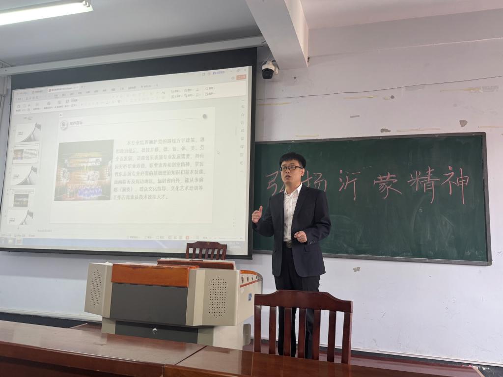 在专业认知讲座中,音乐表演专业负责人李国栋老师结合自身从艺考生到高校教师的成长经历,为新生规划了多条符合当下就业市场的职业发展道路。李老师生动介绍了我校音乐表演专业10余年的发展脉络:从早期服务地方文化的音乐教育方向,到如今对接文旅融合战略的多元培养体系,用照片与数据串起专业的“根与魂”。他重点解读了专业特色——课程设置兼顾“舞台表演+教育教学+文化策划”,既有《声乐基础》《钢琴演奏》等核心课程,也开设《戏剧表演》《流行音乐演唱》《音视频制作与应用》等专业实践课程。针对人才培养方案,李老师明确“能演、会教、善策划”的培养目标,并结合选课规则提醒新生,“学分制下需聚焦1-2个课程深耕,避免贪多求全。”谈及职业规划,他将经验凝练为“大一打基础,大二练技能,大三谋出路”,建议每日练功,参加专业比赛,积累演出经验,用往届优秀学生成果为规划作注脚。