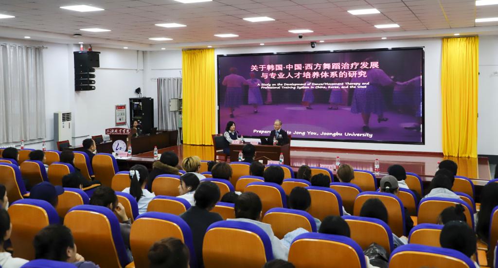 10月13日上午,韩国中部大学刘浩钟教授受邀来校开展《舞蹈治疗》专题讲座,讲座在美术馆开展,学前教育学院舞蹈表演专业师生共200 余人聆听讲座,共同探寻舞蹈与身心健康的深层联结。
